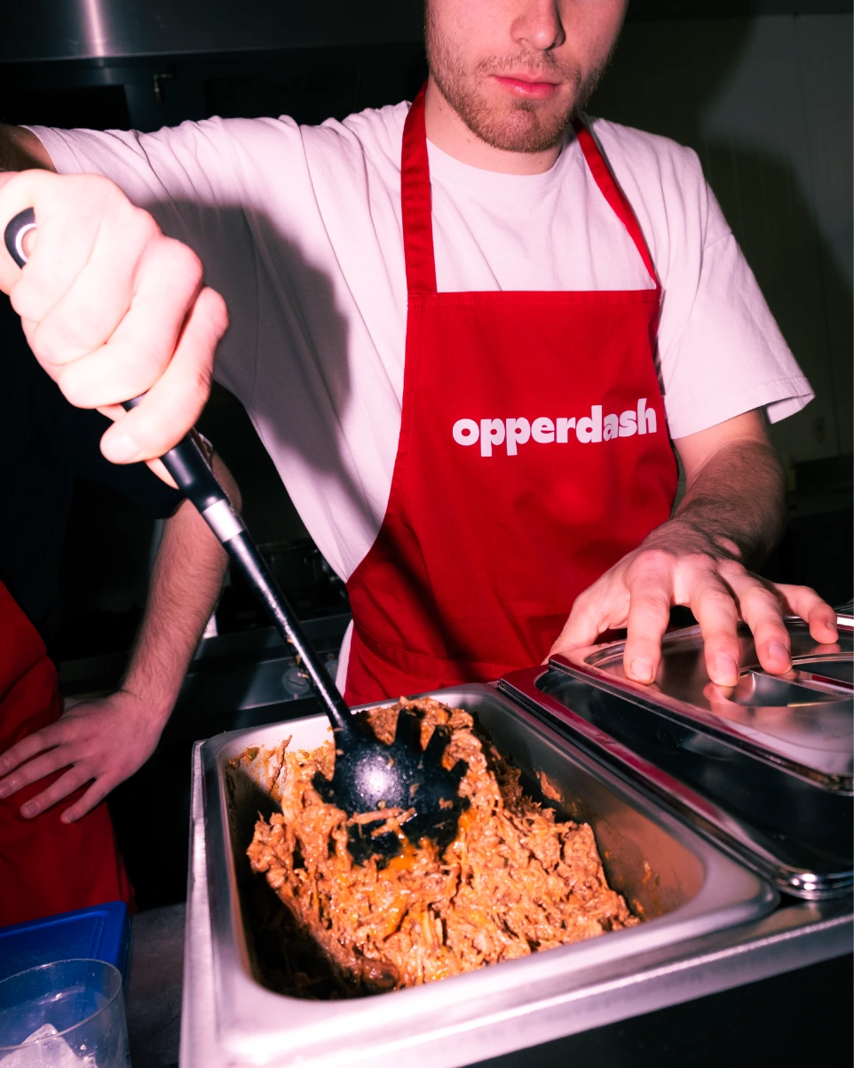 Geen plaats voor een foodtruck? Geen probleem! Opperdash voedt de progressie van jouw team, klanten of gasten. Wij zorgen voor verse gerechten op jouw locatie en serveren vlot grote groepen.